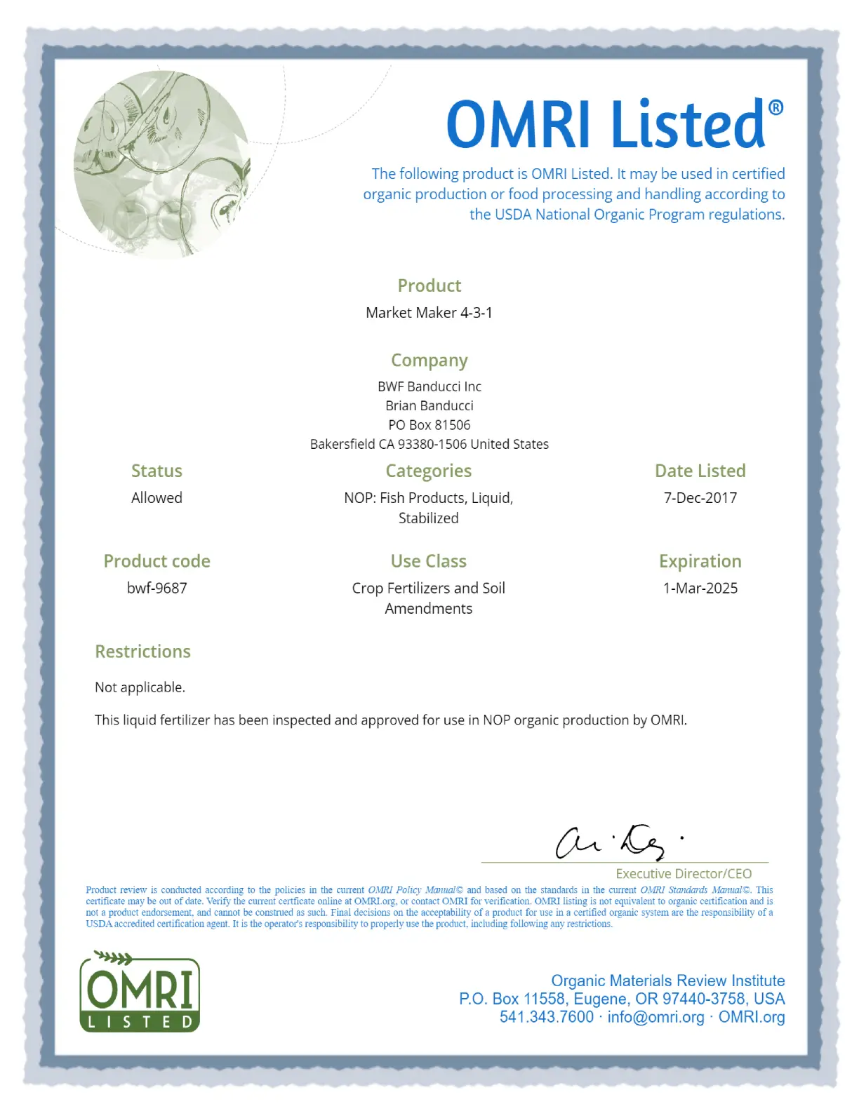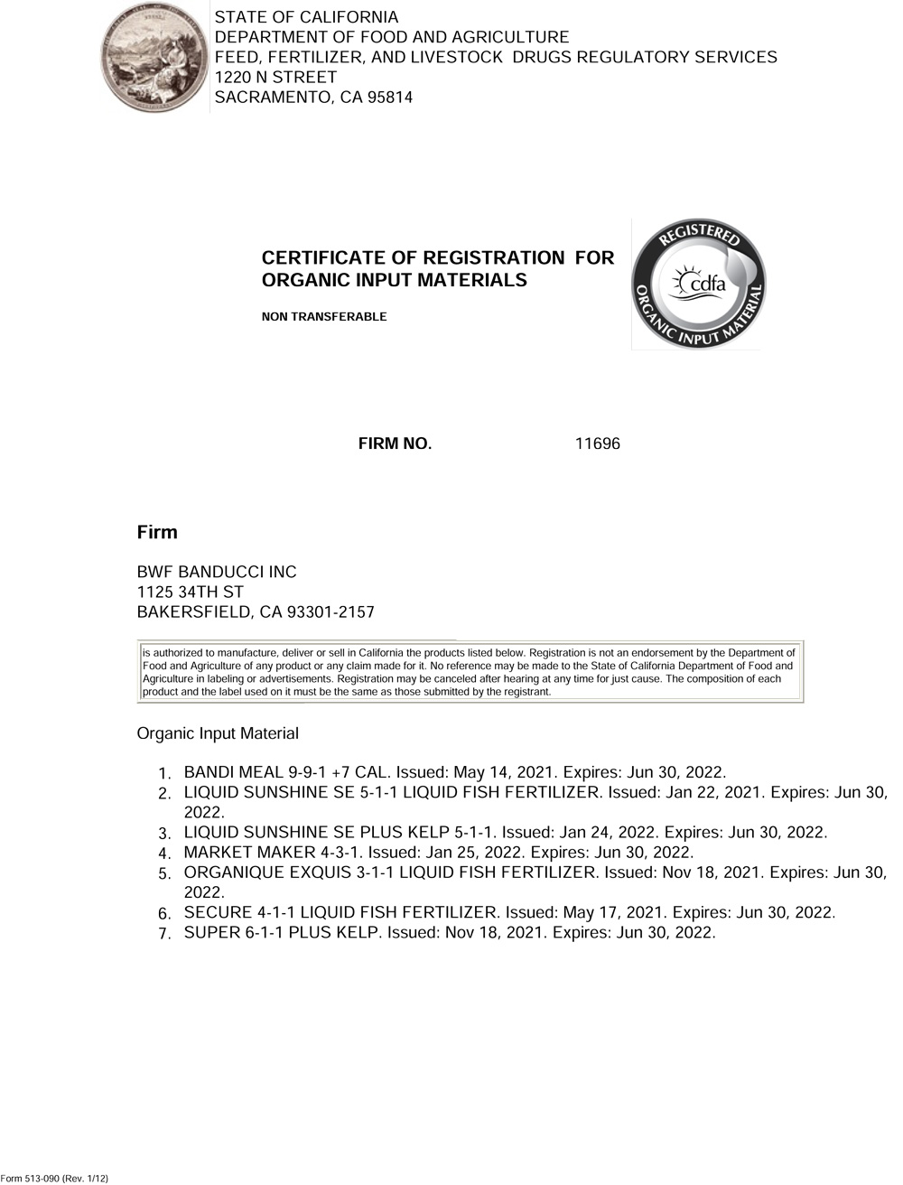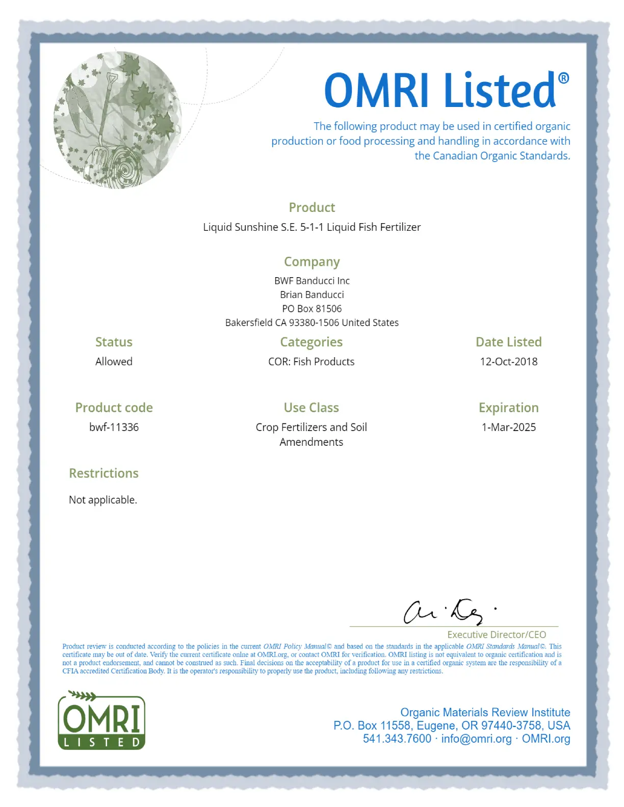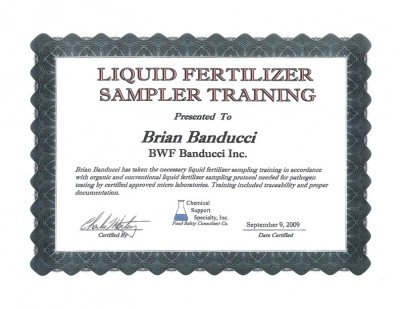 Brian Banducci Liquid Fertilizer Sampler Training Certificate