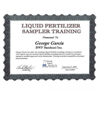 George Garcia Liquid Fertilizer Sampler Training Certificate